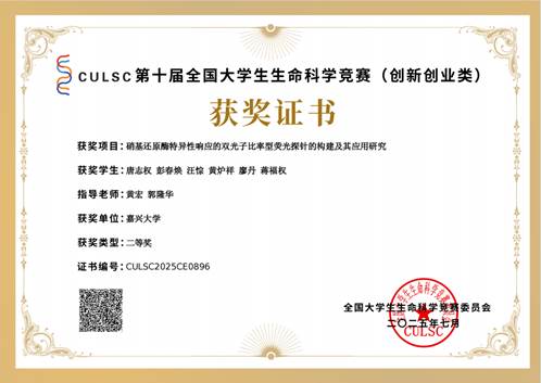 相关成果发表于中科院二区期刊上(Chemical Communications202561560-563)。此外,该成果还荣获第十届全国大学生生命科学竞赛(创新创业类)二等奖(指导老师:黄宏、郭隆华)。