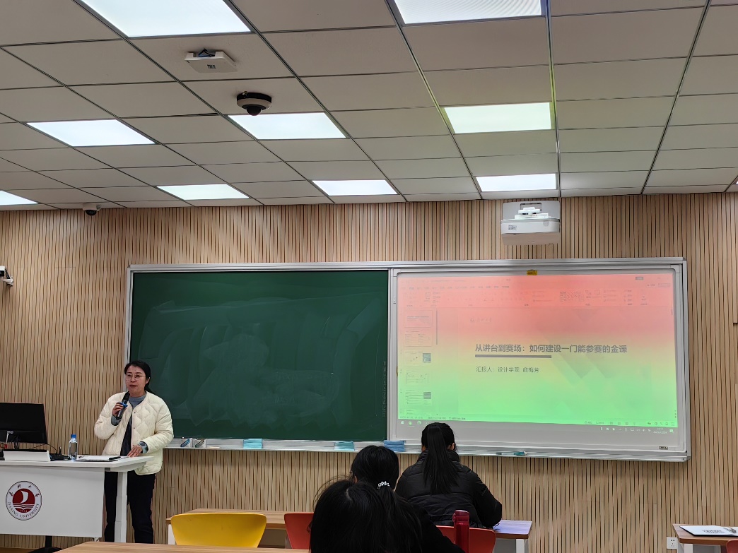 郭海洋老师从赛事简介、申报材料准备、文件解读及课程选择等维度切入,系统分享了教学创新与课程建设的心得。她结合自身实践,强调了先进教育理念在激发学生学习主动性与热情中的关键作用。